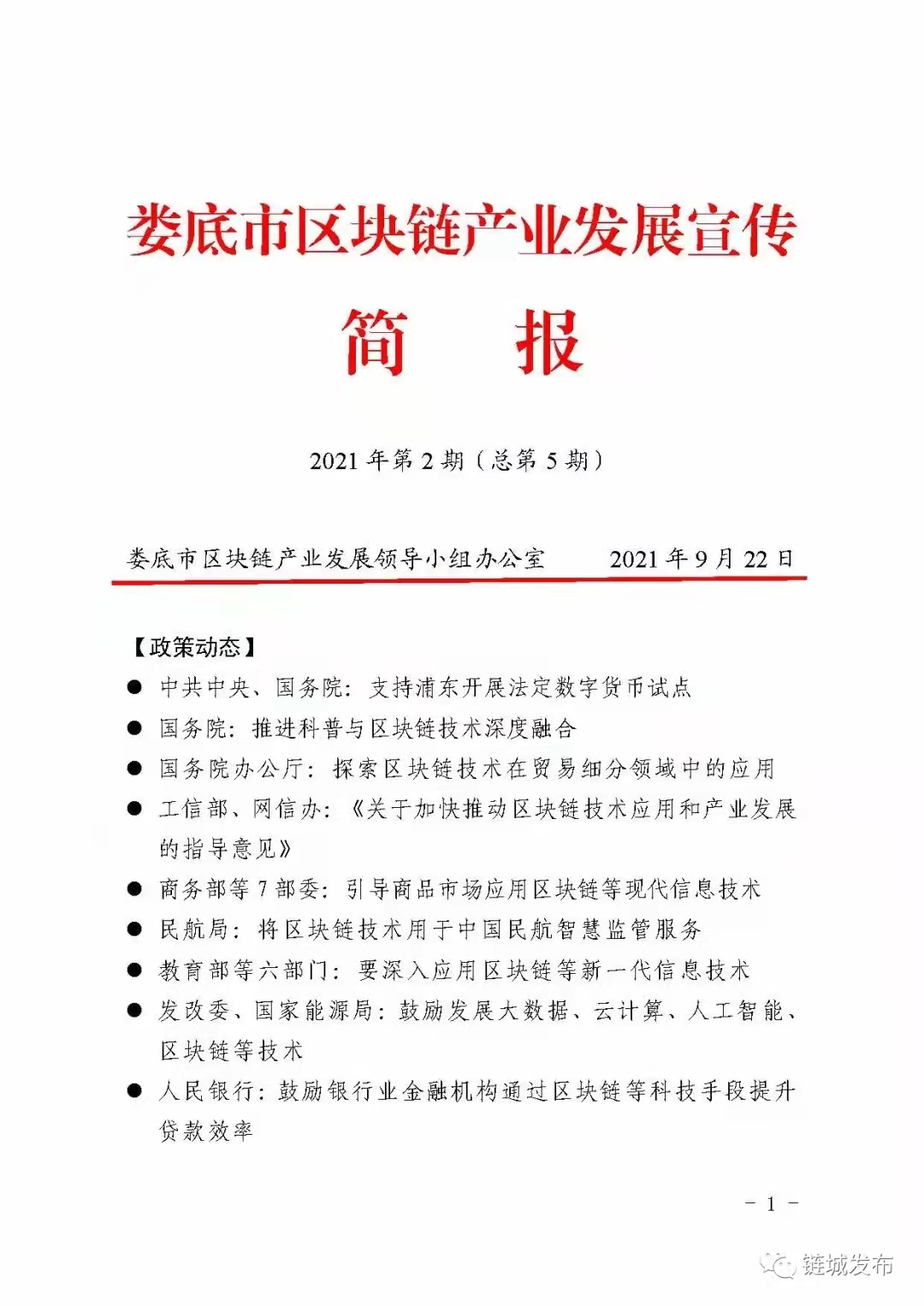 為方便社會各界更好的了解婁底市區(qū)塊鏈產(chǎn)業(yè)發(fā)展動態(tài),婁底市區(qū)塊鏈辦印發(fā)《婁底市區(qū)塊鏈產(chǎn)業(yè)發(fā)展宣傳簡報(2021年第2期)》,以下是宣傳簡報全部內(nèi)容。